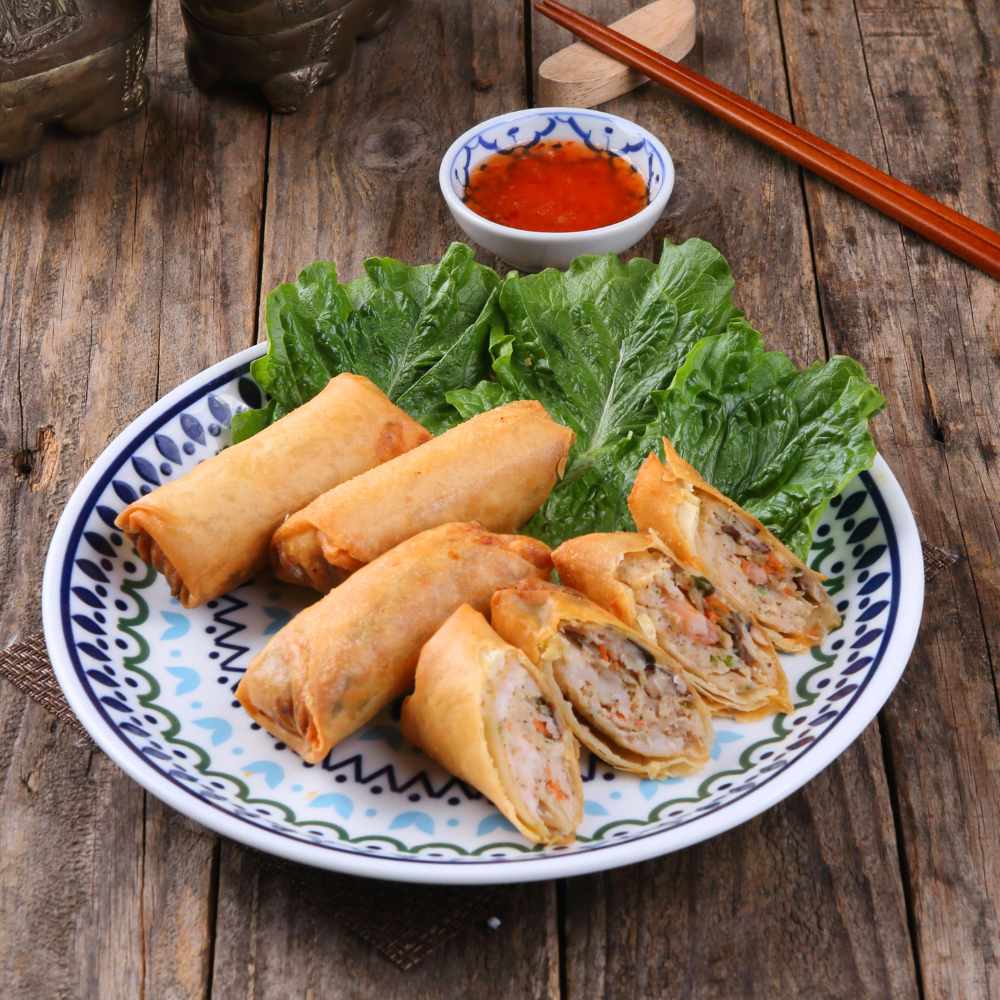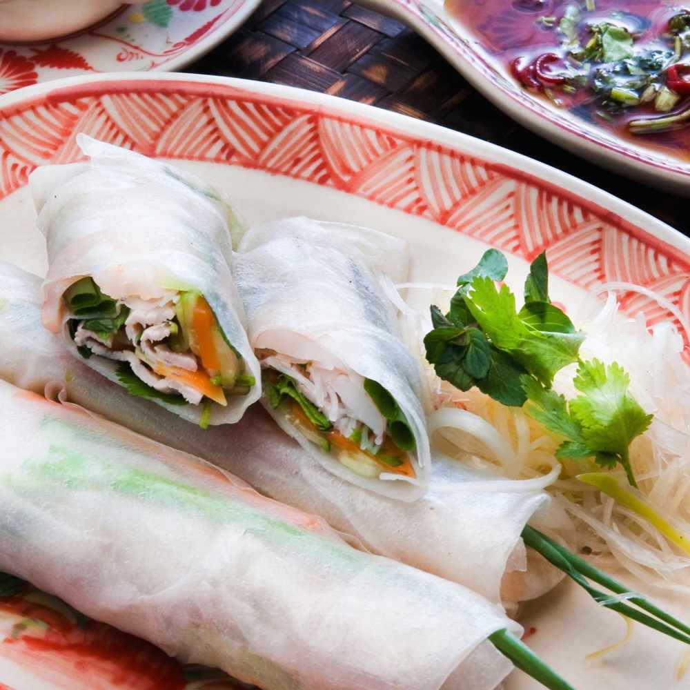 Rice paper needs soaking but not too long or it tears. The filling goes in a specific order: noodles first, then herbs, then your protein choice (shrimp or tofu). Rolling takes practice. Your first one probably looks rough. By the third, you’ve got it. The sweet and sour peanut sauce recipe is 50 years old, passed down through the chef’s family.
